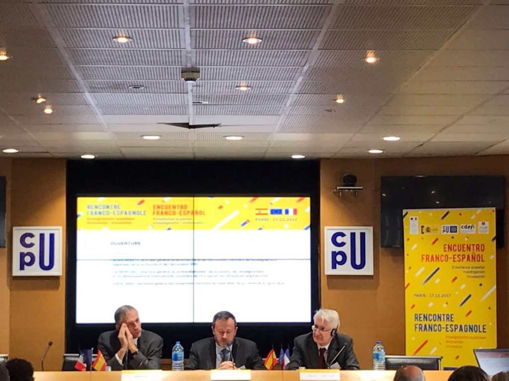 Madrid, 29 de noviembre de 2017. El pasados día 16 de noviembre se produjo en París la primera reunión conjunta del Comité Institucional y del Comité de Conferencias de la Universidad Franco-Española (UFRES) para hacer balance de las actividades realizadas y aclarar los nuevos pasos a dar en este proyecto iniciado en 2015 y concebido como una red universitaria y científica abierta a todas las instituciones de educación superior y de investigación de Francia y España.