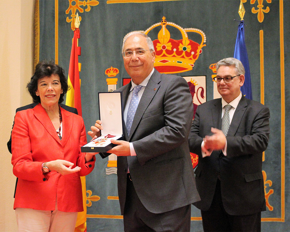 Isabel Celaá ha entregado las condecoraciones de la Orden Civil de Alfonso X el Sabio a un total de 32 personalidades y entidades que han destacado en su labor por la Educación, la Docencia y la Investigación. El secretario de Estado de Educación y Formación Profesional en funciones, Alejandro Tiana, y el subsecretario de Educación y FP, Fernando Gurrea, han acompañado a la ministra en la ceremonia. La Orden Civil de Alfonso X el Sabio se estableció en 1939 y su finalidad es premiar a las personas físicas y jurídicas por los «méritos contraídos en los campos de la Educación, la Ciencia, la Cultura, la Docencia y la Investigación o que hayan prestado servicios destacados en cualquiera de ellos en España o en el ámbito internacional». El Gran Maestre de la Orden es el Rey de España y la Gran Canciller es la ministra o ministro de Educación.