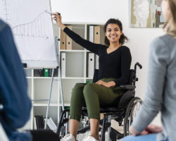Madrid, 6 de abril de 2021. El programa pretende mejorar la carrera profesional de los universitarios con discapacidad, a quienes facilita el acceso a una primera experiencia laboral. Los 291 beneficiarios de la última convocatoria han comenzado sus prácticas en el mes de marzo.