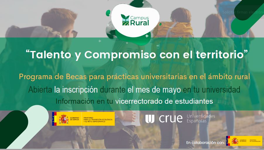 El programa, iniciativa del Ministerio para la Transición Ecológica y el Reto Demográfico, en colaboración con Crue Universidades Españolas y el Ministerio de Universidades, apuesta por las potencialidades del territorio, la promoción del empleo joven y el impulso del talento local, fomentando la vinculación de la población de diferentes zonas con los espacios rurales, generando nuevas formas de arraigo y vínculo, que impulsen la actividad y creen oportunidades de empleo en el territorio.