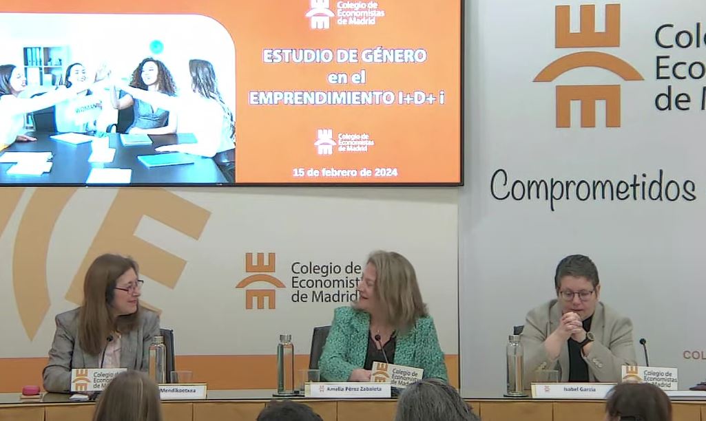La rectora Amaya Mendikoetxea; la decana Colegio de Economistas de Madrid, Amelia Pérez Zabaleta, y la directora del Instituto de la Mujer, Isabel García