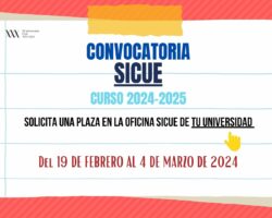 Madrid, 19 de febrero de 2023. La Conferencia de Rectores y Rectoras de las Universidades Españolas (CRUE) ha abierto este lunes, 19 de febrero, el plazo de solicitud del programa de movilidad nacional SICUE para el curso 2024-2025, que permite al estudiantado matriculado en Grado realizar un periodo de estudios en una universidad española distinta a aquella en la que se encuentra matriculado/a. Este periodo de inscripción finaliza el próximo 4 de marzo